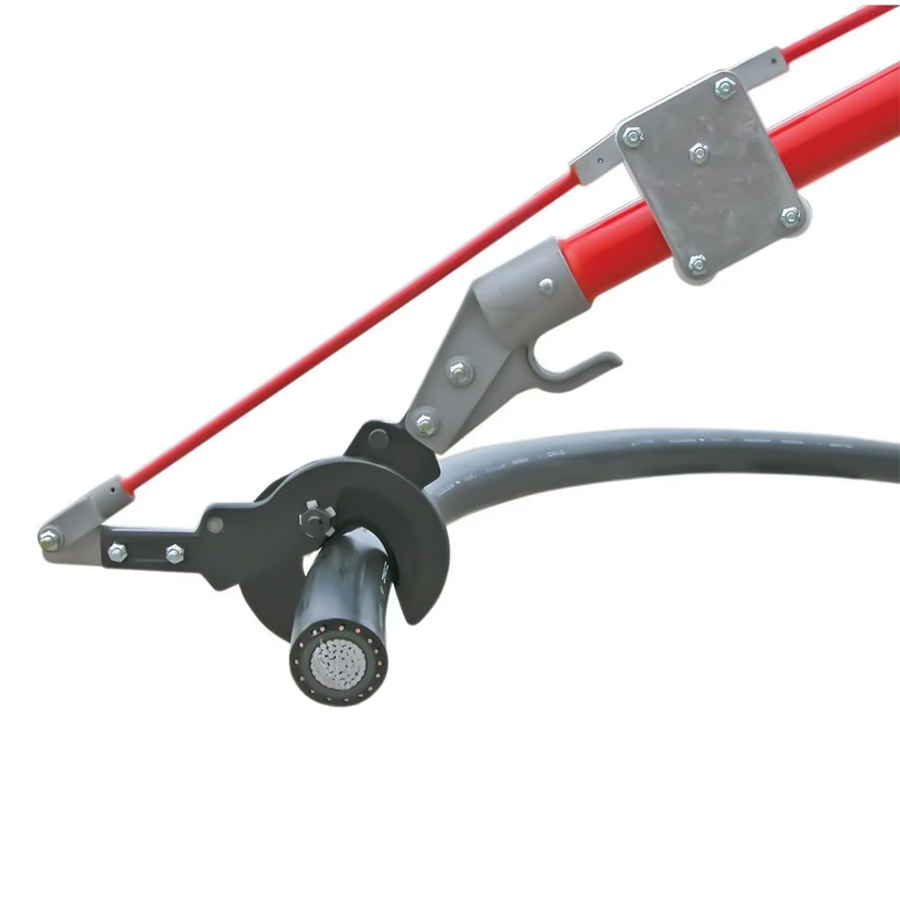 Este diseño de gran desempeño posee rodillos de plástico Delrin y una varilla de operación de dos piezas. El mecanismo a rodillo se desplaza suavemente sobre la pértiga principal de Epoxiglas®. La varilla articulada de operación y la pértiga de Epoxiglas se refuerzan mutuamente y están conectadas por la unidad de soporte a rodillo. Estas cortadoras de cable a trinquete cumplen con los requisitos eléctricos de OSHA subparte V sección 1926.951 (d). La pértiga aislante de soporte es de Epoxiglas color naranja de Chance de 1,5" de diámetro, con tapón de Plastisol; su varilla de operación es de fibra de vidrio sólida de 3⁄8" de diámetro y la palanca es de Epoxiglas de 1" de diámetro con empuñadura de hule. Cuatro modelos estándar en cuatro longitudes muy prácticas de 6 u 8 pies que se surten con cabezal de corte seleccionable para conductores blandos o ACSR. Sus cuchillas de acero tipo tijera cortan el cable sin deformarlo. Los cabezales pueden intercambiarse en el lugar de trabajo. El cabezal para conductores blandos corta cables de aluminio desnudo hasta 1000 kcmil (Ø 1,52"), subterráneo (Ø 2,125") y cobre hasta 500 kcmil (Ø 0,813"). El cabezal para ACSR corta cables 54/7 de hasta 556 kcmil (Ø 1"). Hay tres modelos estándar de cortadoras: con mangos aislados largos o cortos para corte de conductores blandos y con mangos aislados largos para ACSR. Los mangos son de Epoxiglas® Chance color naranja de 1,5" de diámetro, con empuñaduras de hule negras. Las cuchillas tipo tijera cortan sin deformar el cable. Estas cabezas cortadoras de acero termotratado son las mismas que se usan en la cortadora de cable a trinquete de Chance y¡ pueden intercambiarse en el lugar de trabajo. Los cabezales de repuesto o adicionales pueden ordenarse por separado (vea abajo). Nota: no se recomienda usar el cabezal para ACSR con los mangos de 15,5". El cabezal para conductores blandos no debe usarse para cortar ACSR pues dañaría el filo de las cuchillas. Las bolsas de almacenamiento para las cortadoras largas o cortas están hechas de tela extra-fuerte de nylon impregnado con vinilo color amarillo y se ordenan por separado.